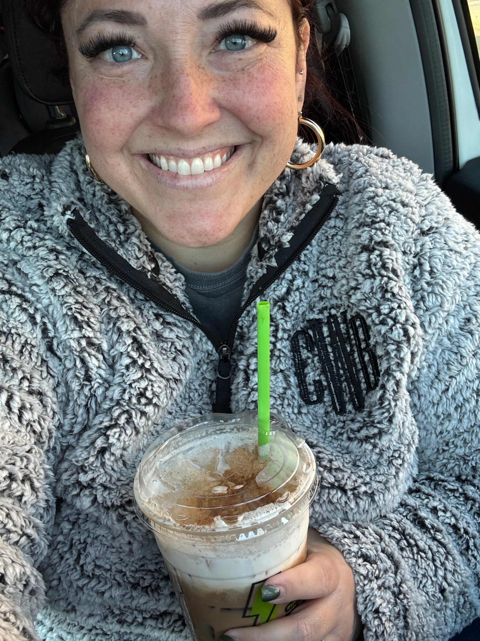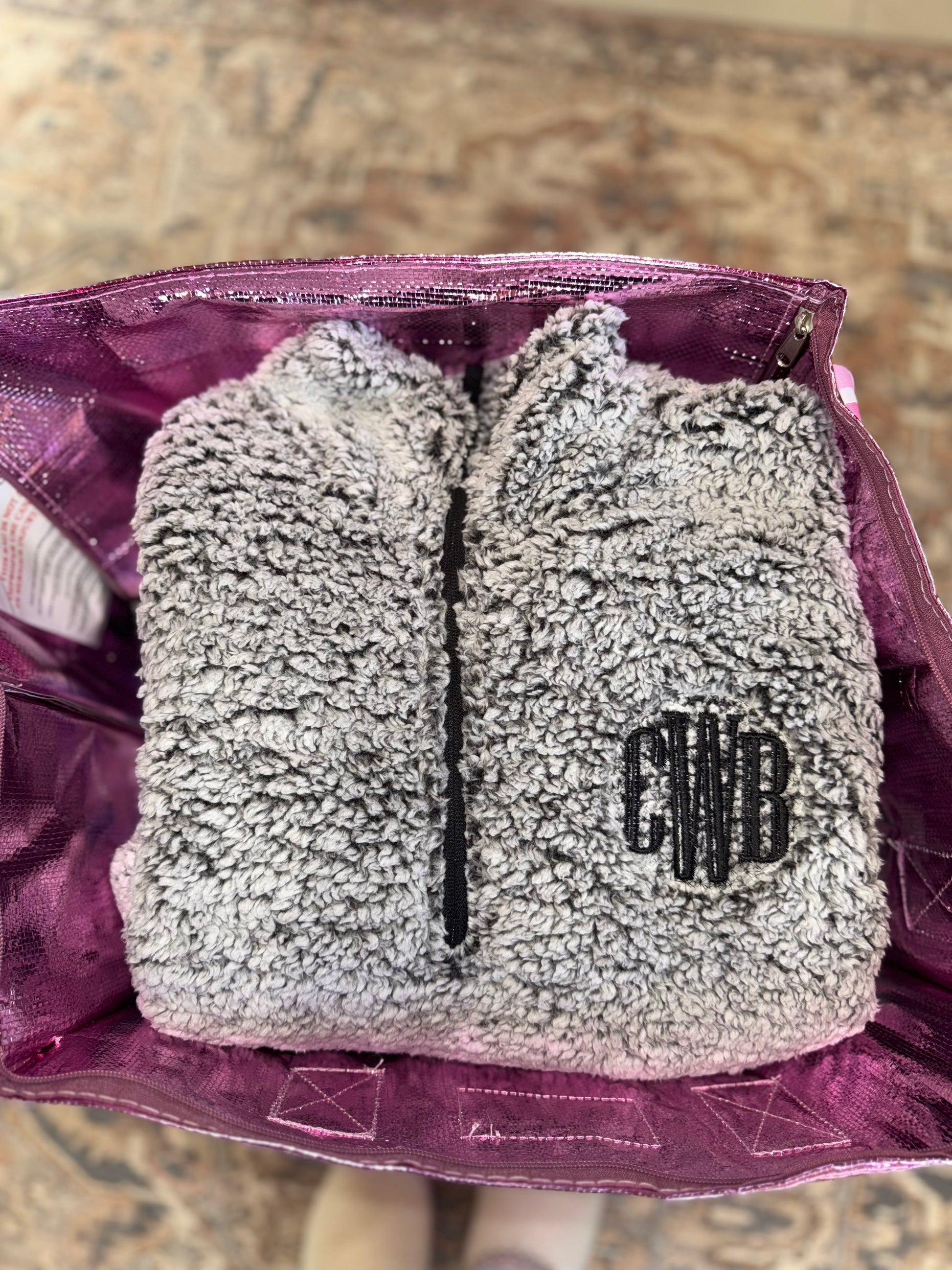 Your monogram will have an embroidered tack down stitch first since the pullover is fluffy. The tackdown stitch will match your pullover color so it doesn't take away from your monogram!