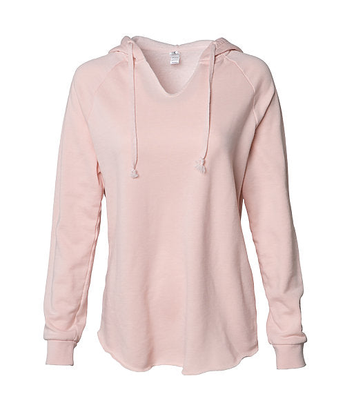Women's California Wave Wash Hooded Pullover is super soft, casual, and extremely comfortable. The beautiful color palette, Modern Silhouette, and soft hand feel makes this style a standout at retail. The unique fabric is Single dyed and heavily garment washed to bring you a one of a kind look, feel, and color tone. We use premium ring-spun cotton to achieve a smooth and stable fabric surface for printing. Completed with our quality construction, raglan sleeves, and sewn eyelets.